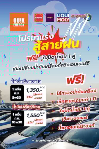 #โปรโมชั่นสู้ฝน #ฟรีใบปัดน้ำฝน #เปลี่ยนน้ำมันเครื่อง #QuikEnergy #อู่ราชพฤกษ์